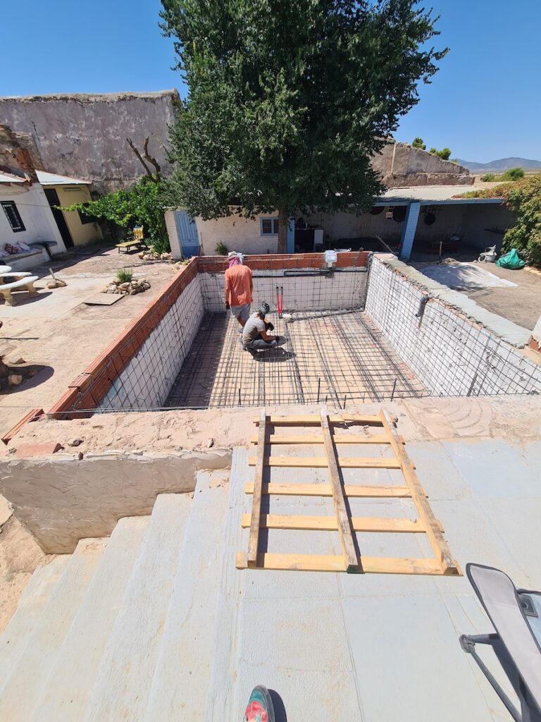 A swimming pool construction Spain in Pinoso. The pool has a pool heater and cover.